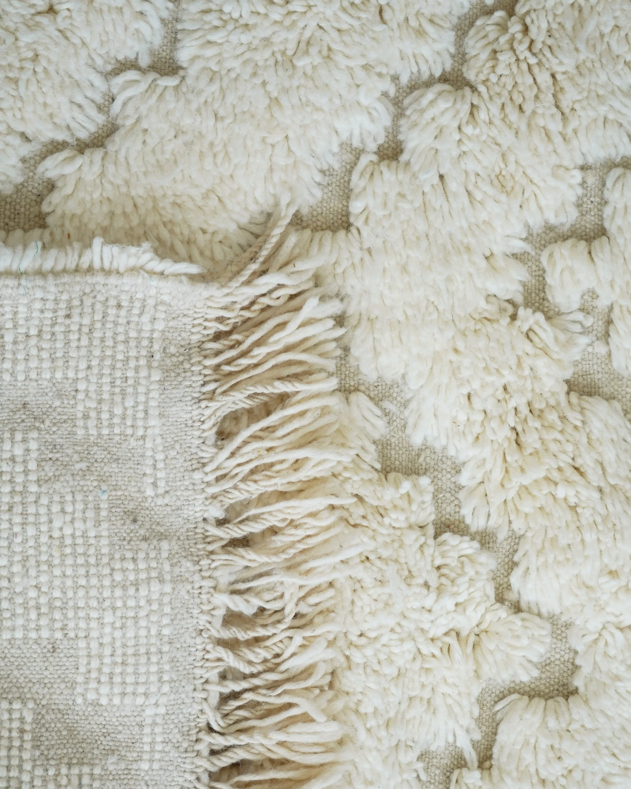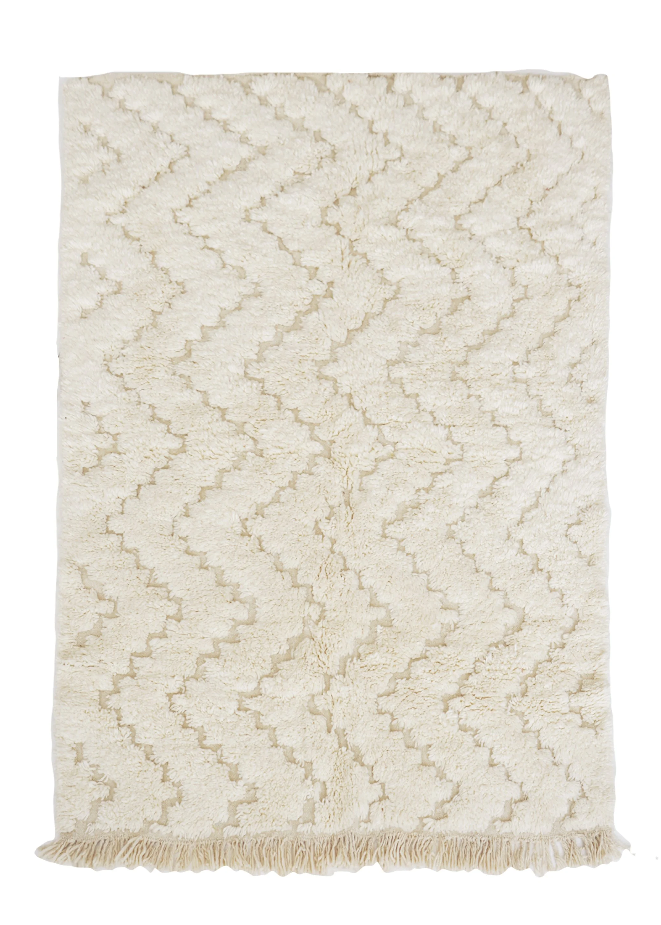This contemporary and timeless Zanafi rug is finely woven from undyed natural organic sheep's wool by the Zanafi tribe in the Atlas Mountains of Morocco.